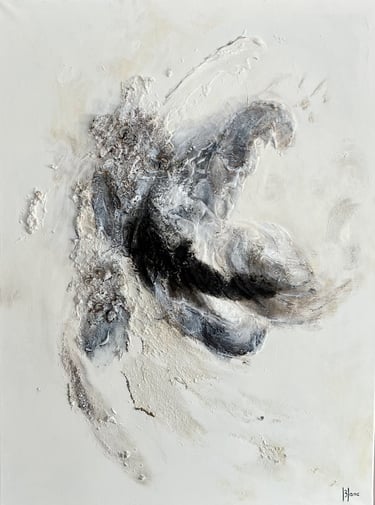 La série Métamorphoses explore l’impermanence, ce moment fragile où tout bascule entre l’avant et l’après. Chaque toile capture une transition : un élan, une cassure, une renaissance. À travers des superpositions de matière, des contrastes d’ombre et de lumière, et l’usage d’éléments naturels comme les terres et les ocres, cette série devient une cartographie des émotions en mutation.