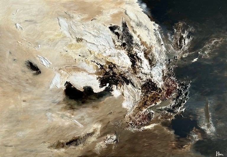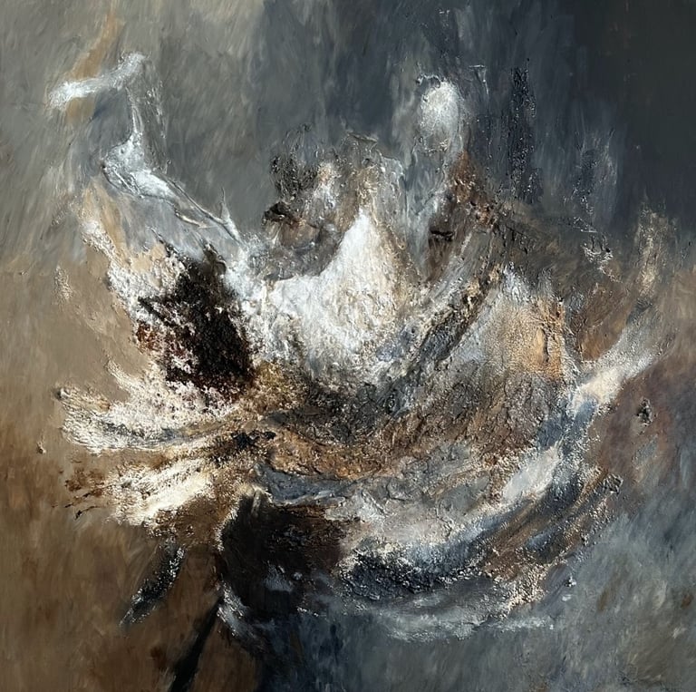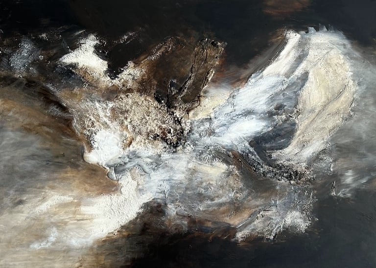 La série Métamorphoses explore l’impermanence, ce moment fragile où tout bascule entre l’avant et l’après. Chaque toile capture une transition : un élan, une cassure, une renaissance. À travers des superpositions de matière, des contrastes d’ombre et de lumière, et l’usage d’éléments naturels comme les terres et les ocres, cette série devient une cartographie des émotions en mutation.
